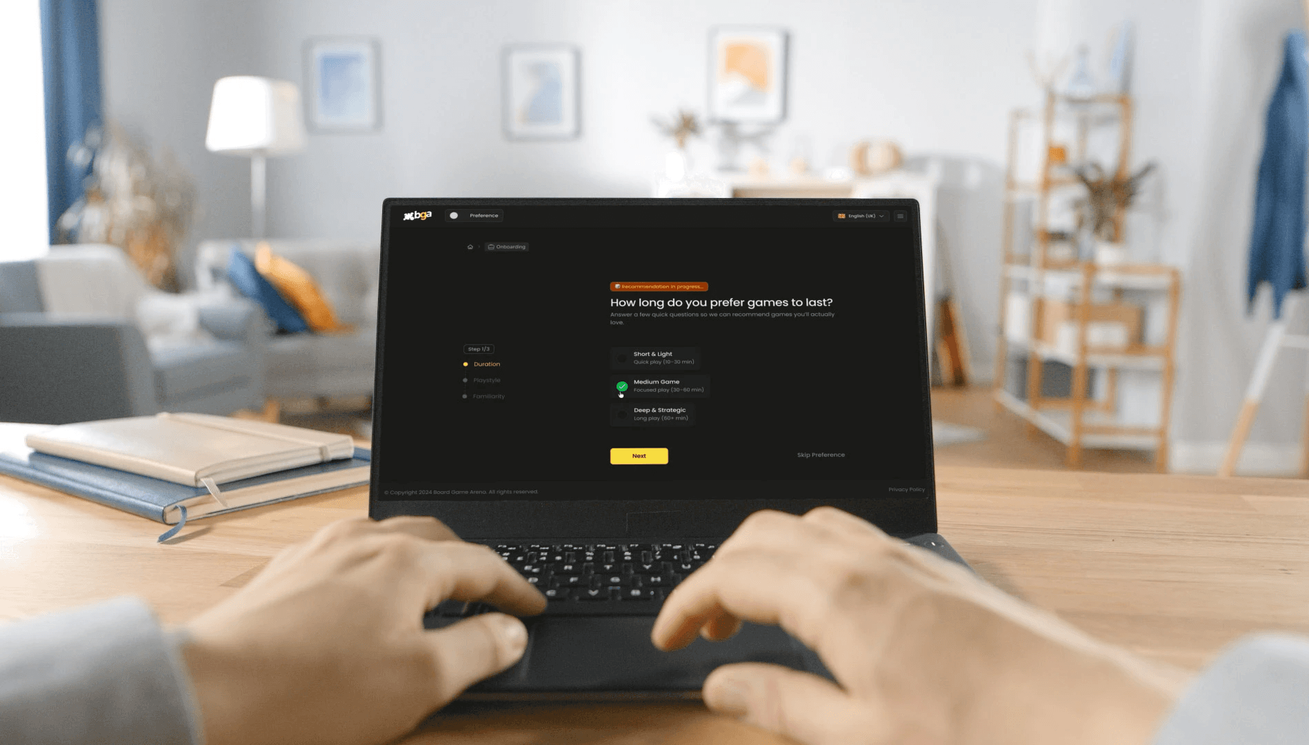 Players define their preferences (game duration, play style, familiarity)